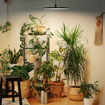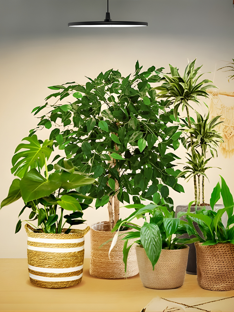 Solace effectively covers a 2-3 foot diameter area. That means one large statement plant like a fiddle leaf fig, a cluster of 3-5 medium plants, or 8-12 smaller pots depending on how you arrange them. The adjustable brightness helps you optimize coverage.